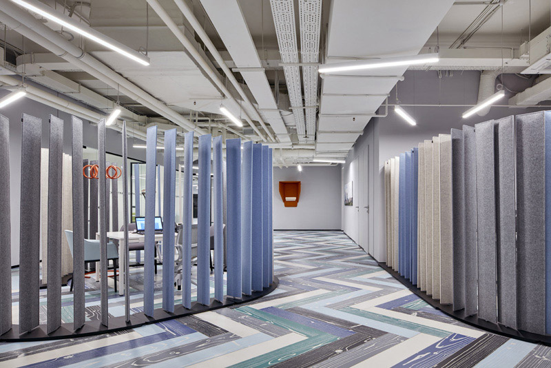 以現(xiàn)代風的手法打造富有現(xiàn)代韻味的主基調(diào),無論是從材質(zhì)還是色調(diào)上不失穩(wěn)重,突顯企業(yè)實力。通過一些設(shè)計亮點和材質(zhì)變化讓這個大空間富有節(jié)奏感,又富有變化性。