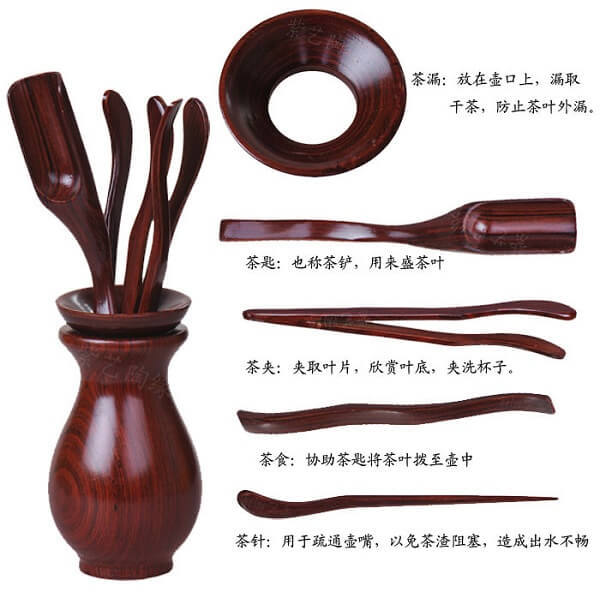 茶道六君子:指的是茶筒、茶匙、茶漏、茶則、茶夾、茶針。
