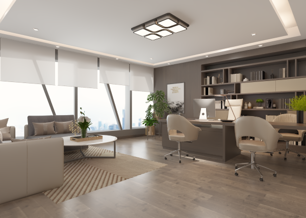 總經(jīng)理辦公室設(shè)計(jì)中顏色搭配很重要,比如:黃色、橙色、紅色、藍(lán)色等,多種顏色搭配在一起給人一種活潑跳躍的感覺(jué);選擇大面積白色給人一種明亮感;棕色給人穩(wěn)重成熟感??偨?jīng)理辦公室裝修很少使用色差大的顏色,一般都是灰色、棕色等作為主色調(diào)。黑與白的搭配空間、強(qiáng)烈的色彩反差或是全部淺色調(diào)處理的素雅搭配,這兩種截然不同的配色方案都可以滿(mǎn)足您時(shí)尚前沿的領(lǐng)導(dǎo)辦公室設(shè)計(jì)設(shè)計(jì)的需求。云杉、淺橡木、樺木、櫻桃木、梣木五種淡雅明快的款式搭配上中淺色系的家具,簡(jiǎn)約時(shí)尚的風(fēng)格就在不經(jīng)意間形成了。BOSS的辦公室裝修設(shè)計(jì)可以選用深色系。一個(gè)企業(yè)的領(lǐng)導(dǎo),應(yīng)該有著不同于員工的威嚴(yán),用深色系可以襯托出權(quán)威和莊重,再配以清新亮麗的顏色配飾作為點(diǎn)綴,莊重不顯沉悶,使得看起來(lái)不會(huì)很壓抑。