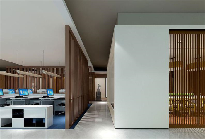 2、講究一種空間的明快鮮明感,干凈整潔明亮,光線充足的人性化空間是簡約中式辦公室裝修風格設(shè)計特點。