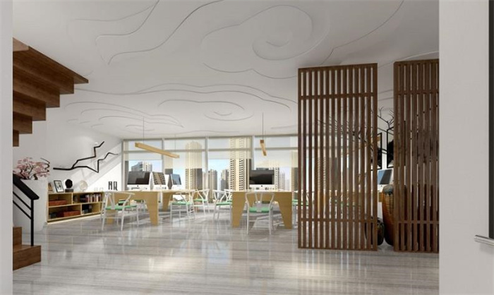 簡約中式辦公室設(shè)計主要包括導(dǎo)入?yún)^(qū)域、公共區(qū)域、通行區(qū)域、工作區(qū)域,每一個功能區(qū)域展現(xiàn)企業(yè)特色的元素并塑造企業(yè)良好的形象。無論是對內(nèi)宣導(dǎo)還是對外展示,簡約中式辦公室設(shè)計集時尚氣息和古色古香于一體,給人留下深刻的印象,讓人們在潛移默化中感受公司獨樹一幟的人文氣息。為充分體現(xiàn)行業(yè)特性,設(shè)計師在設(shè)計簡約中式辦公空間時,將“生態(tài)+綠色”的設(shè)計理念貫徹到辦公環(huán)境中,同時將新中式元素巧妙融合到辦公室設(shè)計里,比如“水墨”、“祥云”,使得辦公空間盡顯別樣的古典韻味。