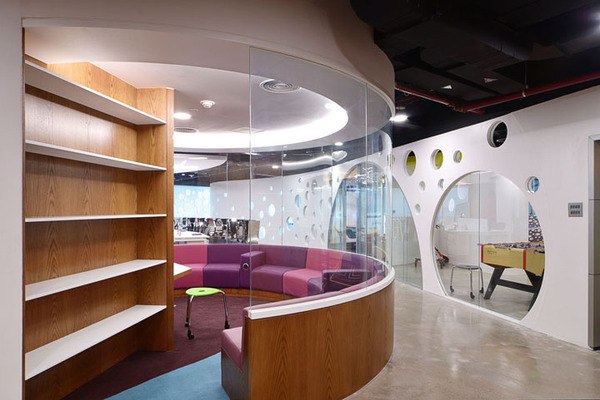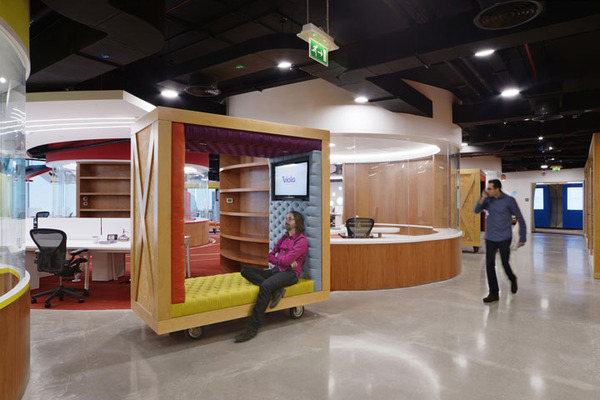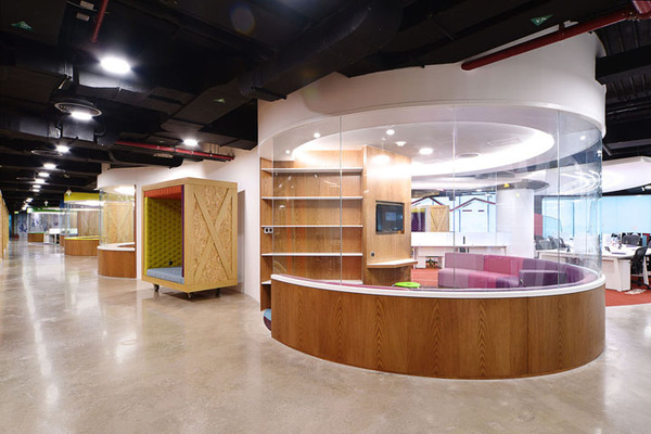 整個布局設(shè)計既能讓員工肩并肩工作與交流,同時又能滿足他們相對的獨立需求。員工區(qū)每個部門采用不同的色彩加以區(qū)分,定制設(shè)計的地毯也相應(yīng)隨之變化。