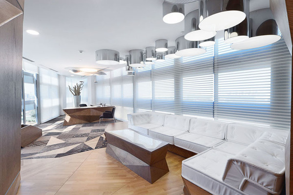 高管辦公區(qū)的空間設(shè)計**視覺沖擊力,且精致典雅。以黑色大理石和橡木為主要裝飾材料。簡潔的色調(diào)通過立體幾何造型拼接令空間充滿時尚活力,營造出***企業(yè)總部的尊崇魅力。