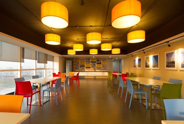 其辦公室裝修設(shè)計(jì)主要運(yùn)用了黃色作為主題色,黃色會(huì)令人樂(lè)觀、精神煥發(fā),進(jìn)而充滿工作的斗志。設(shè)計(jì)師在辦公室裝修設(shè)計(jì)中巧妙地運(yùn)用了黃色,這無(wú)疑能激起辦公人員的工作熱情。