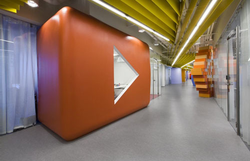這是俄羅斯**的IT公司——Yandex公司的辦公室設(shè)計(jì),設(shè)計(jì)師手法很奇特,大膽,浮雕的指引,大大地時(shí)鐘,明快的色彩和從地面延生到頂部的分割隔斷,色彩豐富,創(chuàng)意十足,辦公室被打造得的清新活潑,而且將IT公司那種朝氣蓬勃、活躍靈動(dòng)的氣質(zhì)表現(xiàn)得****。