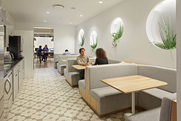 Wieden+Kennedy崇尚精誠合作的工作態(tài)度,因此設(shè)計師設(shè)計了多種多樣的公共空間用以隨時隨地的探討與對話。各種尺度的會議室、休閑金屬吧臺、舒適的午餐區(qū)、可以拉伸的木制會議桌、多功能運(yùn)動或演講廳、藍(lán)莓叢中蜿蜒的座椅露臺等,為員工創(chuàng)造了各種開放性的活動場所。