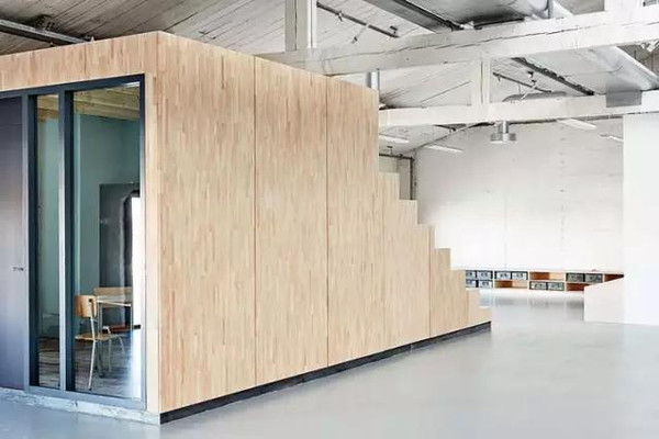 木與鋼的構(gòu)造定義了這個(gè)開放的辦公空間。封閉會(huì)議室和網(wǎng)絡(luò)電話間,由之前租戶**下來的窗框改造而成。經(jīng)過再利用和重新粉刷,這些舊窗框的尺寸定義了新的會(huì)議室的大小和設(shè)計(jì)風(fēng)格。墻面再飾以橡膠木,這是之前橡膠工廠的廢棄物。粗獷的鋼材與溫暖的木肌理在這個(gè)舊工業(yè)廠房空間里形成了強(qiáng)烈的材質(zhì)對(duì)比。而那些原封不動(dòng)的梁架和墻體則繼續(xù)延續(xù)著建筑的歷史脈絡(luò)。