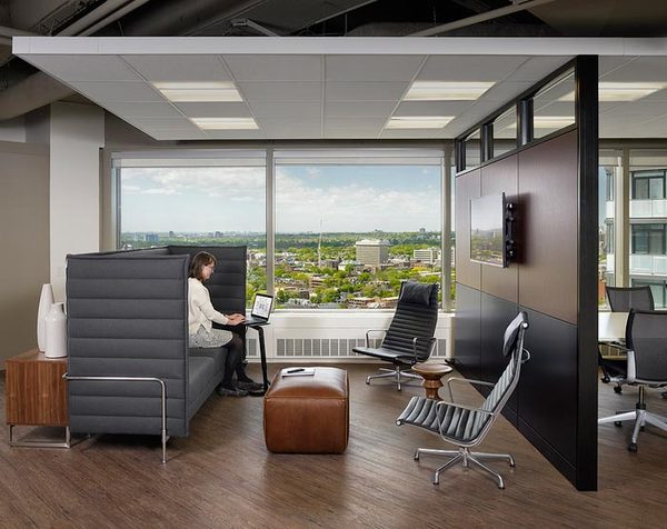 高管區(qū)域的設(shè)計,設(shè)計師希望為他們創(chuàng)建一個靈活的辦公場地。