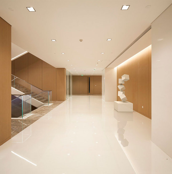其中中間150多平面的挑空層成為貫穿上下3層辦公空間的主要樓梯通道。雙向上下滿足高流量需求。