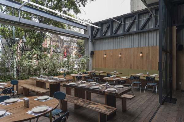 設計師還設計出一個臨街的室外餐廳,可打開或合起的遮陽棚讓就餐的顧客可以感受到不同的氛圍。