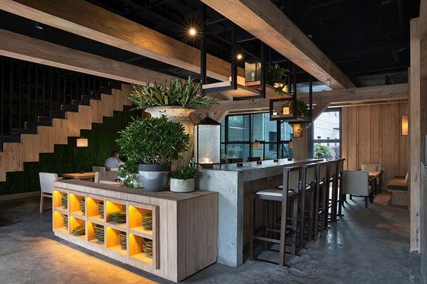 深色木條作為室內(nèi)墻面的主要材料奠定了整個(gè)空間的基調(diào),而整個(gè)中餐廳桌椅和配飾運(yùn)用了不同程度的灰色,營(yíng)造出一種神秘的氛圍,這就是該餐廳裝修設(shè)計(jì)的魅力!