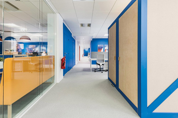 電子商務(wù)公司辦公室的品牌標(biāo)志多與顏色有所關(guān)聯(lián),在辦公區(qū)域設(shè)計的時候,設(shè)計師采用了由淺至深的顏色分布,表現(xiàn)企業(yè)的陽光積極,這也表現(xiàn)電子商務(wù)行業(yè)公司辦公室裝修的時尚元素。