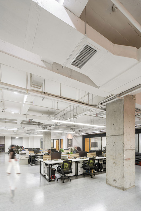 新辦公室的設(shè)計之初,本著拋開一切的華而不實的裝飾,保留建筑*本真的空間屬性,柱子和天花被**化的保留原始的風(fēng)貌,揭示出裸露的構(gòu)造。