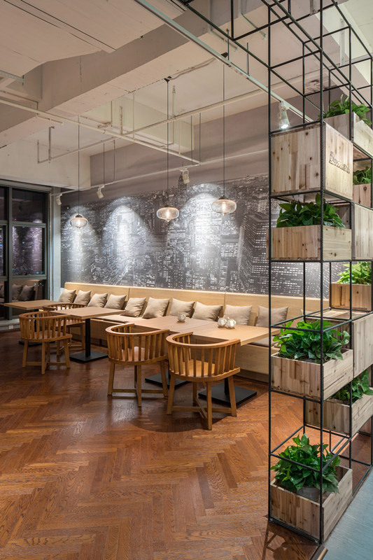 以建筑*基本的材料來重構(gòu)整個空間的精神:鋼筋、混泥土、原木、原頂、鋼板等喚起工業(yè)城市美學(xué),簡單、大膽、實用,突出設(shè)計的屬性。