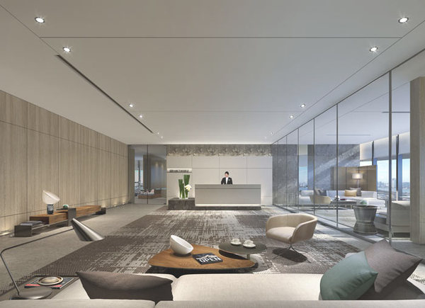 進(jìn)門區(qū)域的設(shè)計(jì):設(shè)計(jì)師在設(shè)計(jì)的時候,采用接待區(qū)域在前、前臺在后的設(shè)計(jì)手法,在設(shè)計(jì)師看來空間的視線極好,這樣的設(shè)計(jì)可以更進(jìn)一步的加深客戶對于企業(yè)的印象,同時接待與詢問一氣呵成,更加反映出企業(yè)在客戶體驗(yàn)上的細(xì)節(jié)體現(xiàn)。