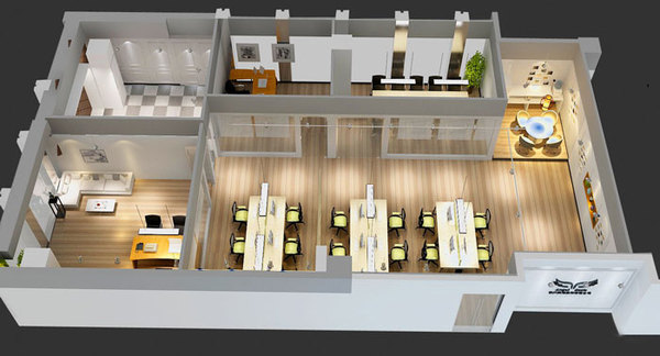 俯視圖:通過(guò)以上的俯視圖大家對(duì)于空間會(huì)有一個(gè)直觀的認(rèn)識(shí),企業(yè)品牌設(shè)計(jì)在外部墻面,經(jīng)過(guò)進(jìn)門(mén)區(qū)域進(jìn)入辦公室,首先經(jīng)過(guò)的就是形象墻,到達(dá)打印茶水區(qū)域,通過(guò)動(dòng)線拐彎經(jīng)過(guò)開(kāi)放式辦公區(qū)域與會(huì)議室、副經(jīng)理辦公室,**到達(dá)總經(jīng)理辦公室與拍攝區(qū)域。