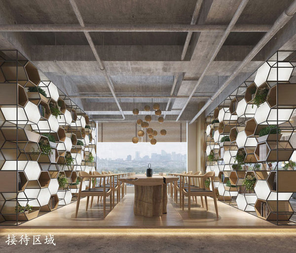 接待區(qū)域的設計:設計師在設計的時候,將其設置在一個湖光山色的自然空間,設計師希望通過這樣的設計拉近企業(yè)與顧客之間的關系,同時讓客戶對企業(yè)產(chǎn)生一種莫名的信任感,在交流的過程中不斷的了解對方,為下一步的合作留下契機。