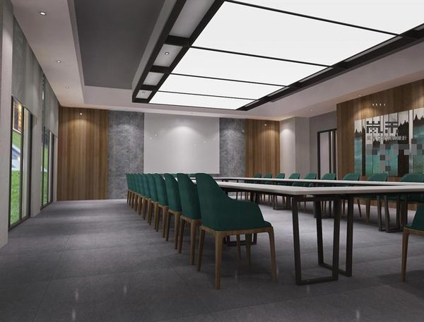 此處會(huì)議室設(shè)計(jì)有所不同,因?yàn)槠涞刂吩谪?fù)一層,設(shè)計(jì)師除了要保證本身的功能與格局外,還需要特別注意燈光的布置,設(shè)計(jì)師的目標(biāo)就是布置的簡(jiǎn)單大氣且?guī)в猩虡I(yè)氣息。