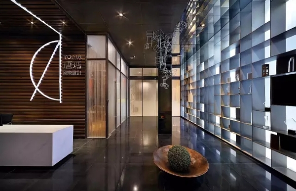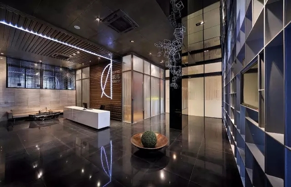 前臺(tái)對(duì)面的墻面處,擺放著一個(gè)傳統(tǒng)中式的柜體,黑色的大漆外表點(diǎn)綴著赤色的朱砂,體現(xiàn)出骨子里的我國(guó)精力以今世的審美視覺(jué)體現(xiàn)東方的空間氣質(zhì)。