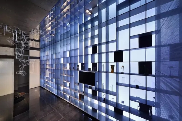 平面與立面的構(gòu)成在這個(gè)區(qū)域被潛移默化的表達(dá)出來(lái),闡述著今世的解構(gòu)主義理念,實(shí)在、虛幻以及兩者的聯(lián)系。格子內(nèi)陳設(shè)著各項(xiàng)世界新的榮譽(yù)。在此基礎(chǔ)上,是非的界面在燈火的效果下煥宣布異樣的視覺(jué)感染力。
