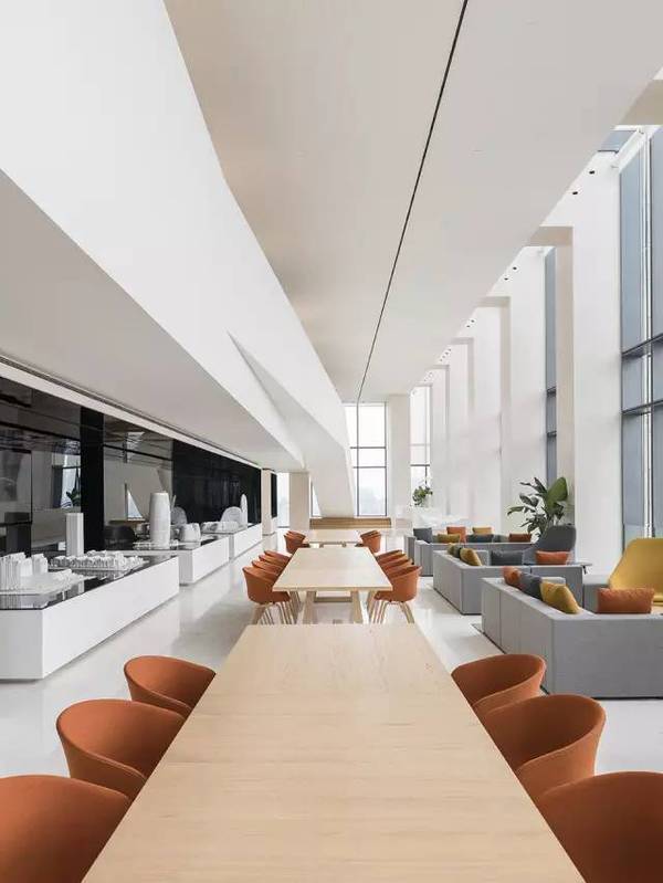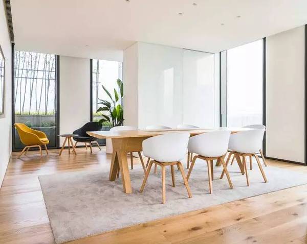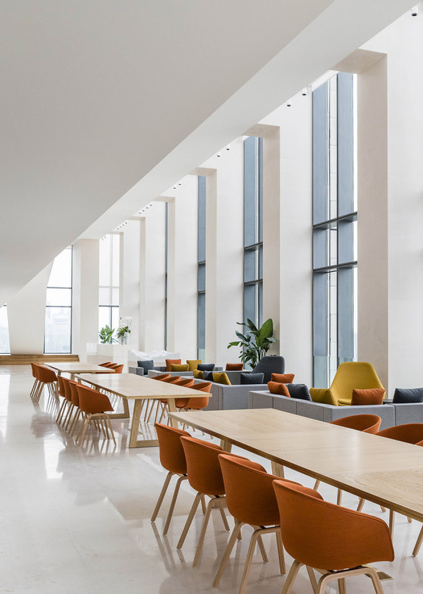 每天,人們都會(huì)在辦公室中呆很久,所以設(shè)計(jì)師希望創(chuàng)造一個(gè)舒適而又智慧的場(chǎng)所。設(shè)計(jì)師為天花上的燈加上了一層反射膜,這樣整個(gè)天花都能發(fā)出柔和的漫反射光。這是一個(gè)充滿創(chuàng)新而又微妙的設(shè)計(jì),連接室內(nèi)外。諸如用戶自己設(shè)計(jì)的地毯和藝術(shù)品這類的細(xì)節(jié),也顯示出外灘SOHO的空間精神,同時(shí)也給這個(gè)開放大空間以豪華而又親密之感。