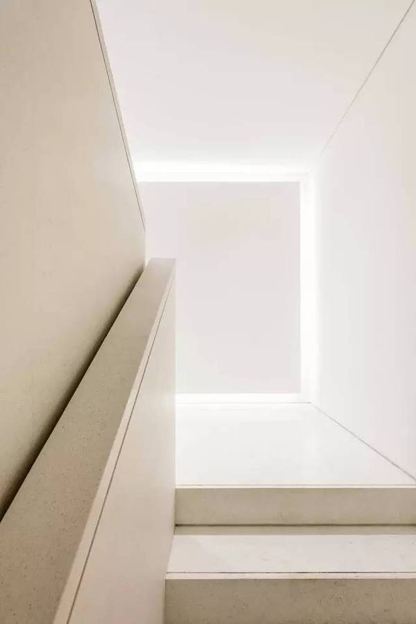 外部空間把閣樓包裹起來(lái),創(chuàng)造出可以看到外灘和浦東壯觀城市景象和綠意的視角。提醒我們即使身處鬧市,依舊可以擁有一方寧?kù)o與安祥。從室內(nèi)巨大的窗戶看出去,樓梯間平臺(tái)與窗外的城市保持了一致的頻率。光線也可以創(chuàng)造和分割空間。