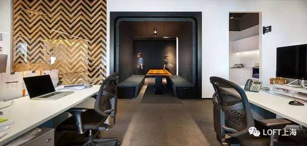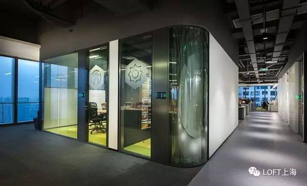 木材表面、日光和綠色墻壁給‘休閑就餐’區(qū)域帶來了大自然的感覺。采用對比色的地板標(biāo)示出了環(huán)繞在辦公室核心地帶周圍的‘跑道’循環(huán)路線。