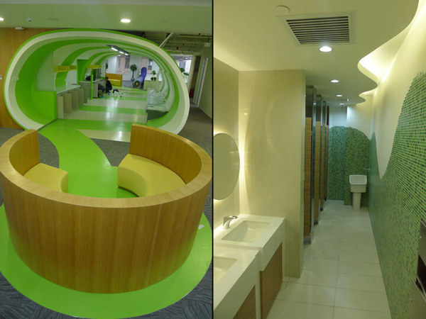 辦公室休息區(qū)和茶水間再次用它們?cè)煨酮?dú)特的辦公室裝修設(shè)計(jì)來突出“360綠”在整個(gè)品牌甚至企業(yè)滲透到細(xì)節(jié)的滲入影響,在讓員工耳目一新、眼前一亮的同時(shí),跟*近的新聞?lì)^條也很應(yīng)景呢。