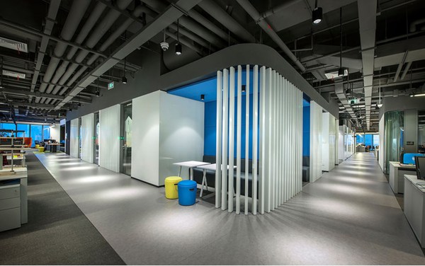 本案例采用木材表面、日光和綠色墻壁給‘休閑就餐’區(qū)域帶來了大自然的感覺。采用對比色的地板標示出了環(huán)繞在辦公室核心地帶周圍的‘跑道’循環(huán)路線。激發(fā)獨特的全新辦公空間的創(chuàng)造力和協(xié)作性。領(lǐng)企設計:m.sddaj.cn(領(lǐng)企設計官方網(wǎng)站更多相關(guān)內(nèi)容)