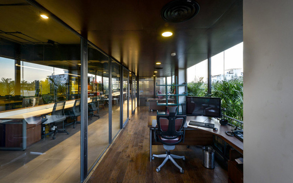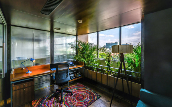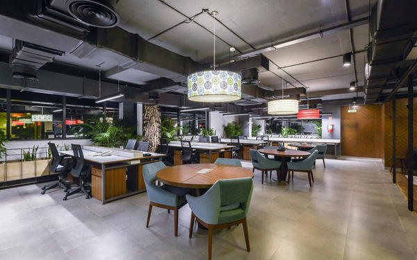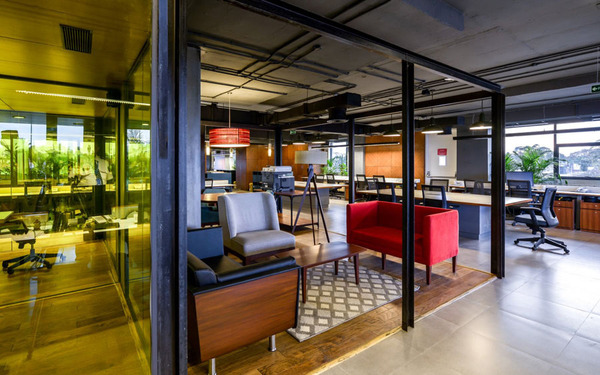 整體辦公室裝修設(shè)計以粗獷的大地色系配以隨處可見的綠色植物,營造如在戶外探險的氛圍,創(chuàng)建一個充滿活力的協(xié)作型工作環(huán)境。這些綠植和工位系統(tǒng)巧妙結(jié)合在一起,在長時間的工作環(huán)境里,偶爾瞥見近旁的植物,給眼睛帶來片刻的舒緩和休息。同時這樣的氛圍營造契合公司的品牌文化。有趣的設(shè)計元素,形成一個非常有趣的空間表達。更多辦公室裝修設(shè)計關(guān)注領(lǐng)企設(shè)計:m.sddaj.cn