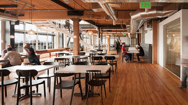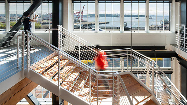設(shè)計(jì)師用新的鋼結(jié)構(gòu)與再生木制成樓梯,連接上下樓,開放式的辦公室設(shè)計(jì)在這一基礎(chǔ)上再次放大,這種辦公室是非常利于交流的,比起封閉的辦公室,我們更能感受到團(tuán)隊(duì)氣氛。