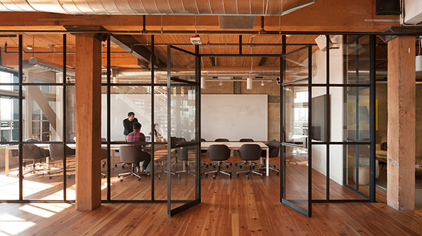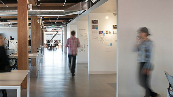 混凝土新時(shí)尚,這是一家用舊廠房改過的辦公室設(shè)計(jì),完全開放式,分成多個(gè)空間,辦公室設(shè)計(jì)公司不斷將這種新鮮時(shí)尚的感覺放大。無疑這是很典型的一種工業(yè)風(fēng)格,設(shè)計(jì)師充分的尊重并利用廠房里的的舊材料和原始特征。加入現(xiàn)代的形式,玻璃的會議室間隔,優(yōu)雅的琺瑯前臺,再看大量使用的木材和磚石,和板形混凝土**在一起融合。