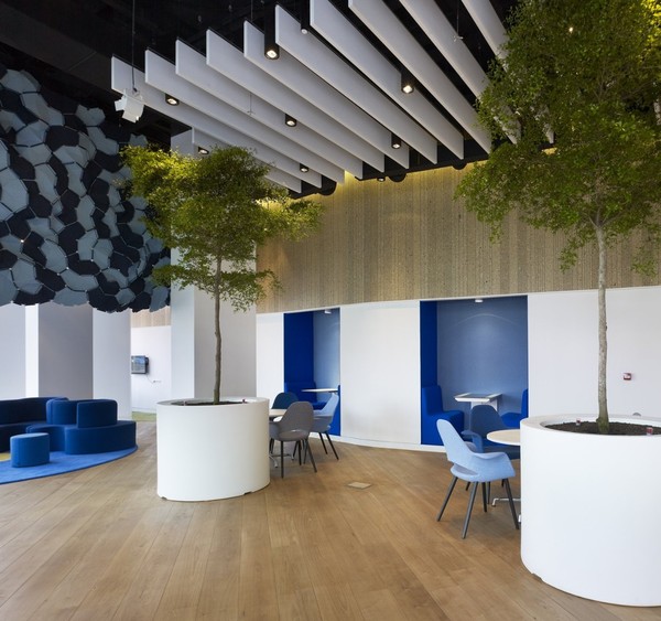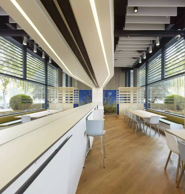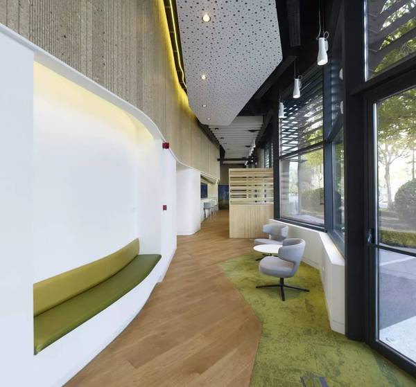 這個地方不僅僅只是訪客中心,它還必須兼具其他多種功能,比如用來傳達(dá)與公司產(chǎn)品有關(guān)的信息、發(fā)布新聞、舉行會議、服務(wù)客戶、供員工們吃飯休息喝咖啡、或者僅僅就是等人。