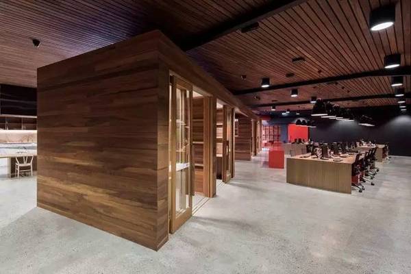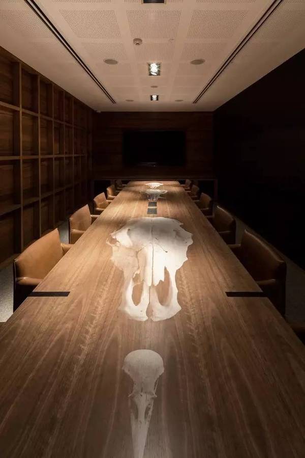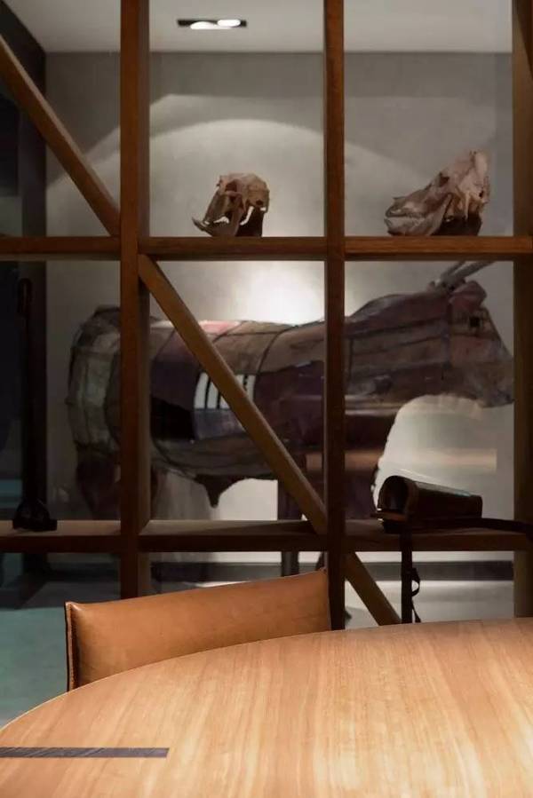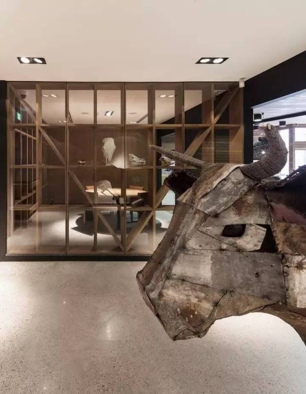 黑色、紅色以及原木色為主要的色調(diào),沉穩(wěn)的色彩搭配加上大量的原木設(shè)計(jì)搭配,展現(xiàn)出溫暖的一面。大量動(dòng)物骨骼的工藝品和圖片分布在辦公室的每個(gè)角落,展示著企業(yè)的行業(yè)文化。