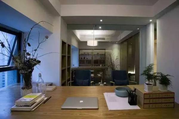 本案中式辦公室設(shè)計以素雅簡單為主,使用單一簡單的木飾材料與白色墻面形成對比增加空間的層次感,空間大量采用留白的手法,插入些造型細節(jié),讓立面顯得干凈而又不會太過蒼白單調(diào),再用暖色燈光中和白色墻面的冷,使整個空間看上去非常的溫馨干凈。