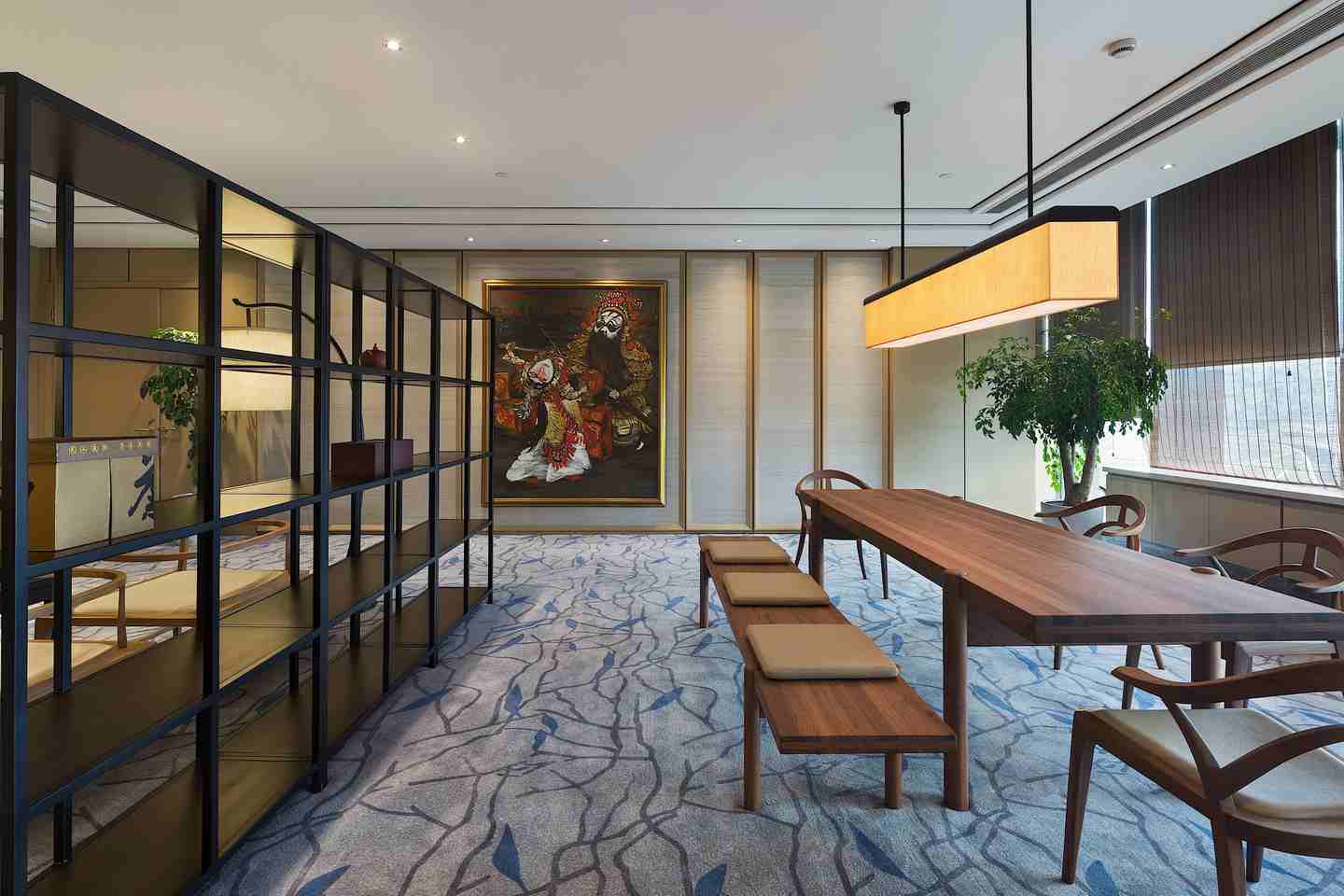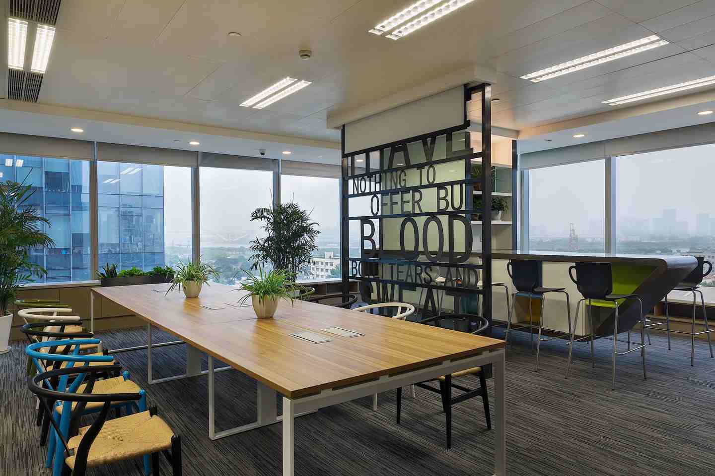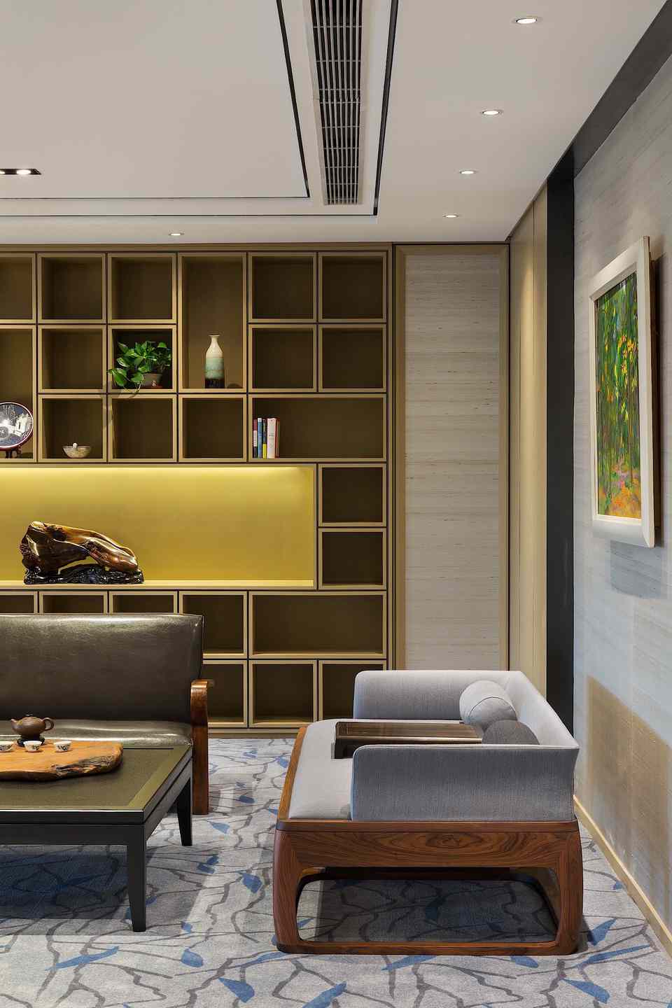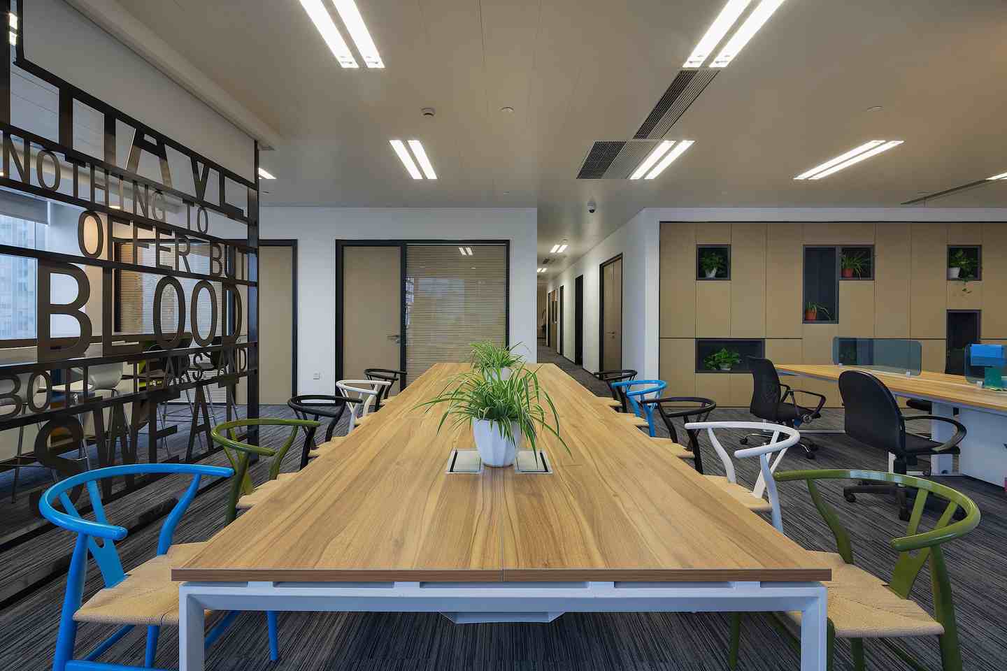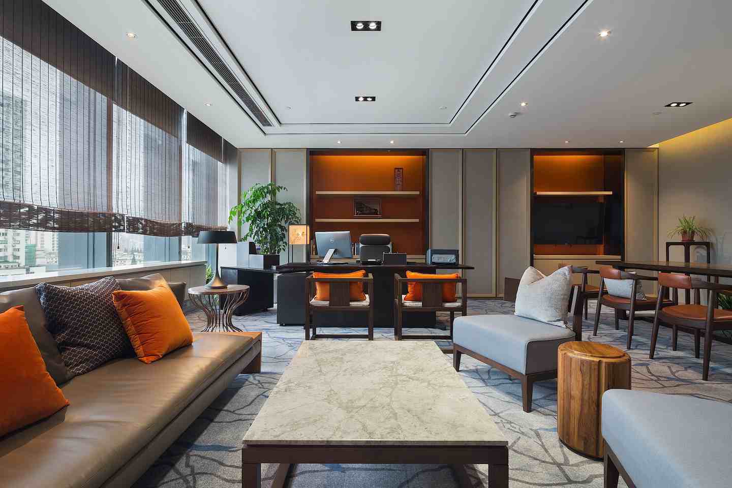 | 都市人文辦公,互動綠色風景 “你站在橋上看風景,看風景的人在樓上看你。明月裝飾了你的窗子,你裝飾了別人的夢?!比伺c人、人與景之間的交織互動在卞之琳的《斷章》里詩意呈現(xiàn),也同樣貼合設計師王兵為同進置業(yè)公司的新濱江辦公室定下的設計思路。他的空間設計結合江景地利、都市人文,在實用功能、格調品位之外,借助綠植規(guī)劃等巧妙手法,進一步突顯地產公司的職業(yè)形象與社會責任,不僅充分納景入室,更樹立起友好對外界面,成為一道嶄新的綠色都市風景。 在設計師王兵看來:“當下多數(shù)的辦公空間設計是一種機械化的、枯燥的、沒有良好溝通界面的設計?!彼运麌L試在辦公空間的設計上做一些變化。新完成的同進置業(yè)公司辦公室位于上海徐匯濱江的綠地中心,在一座雙子樓里。C字形空間南面朝向黃浦江,有極好的江景視野,另有一邊朝向對面雙子樓。 在此基礎上,引發(fā)其室內設計的兩個思考點:首先,作為地產公司的辦公室,怎樣才能既突顯職業(yè)特征、公司形象,又能有設計感,顯示出良好的格調品位?第二,怎樣去分享景觀面,**化納入江景,讓公司員工都能共享到?除此之外,“不只是考慮使用者的需求,同時考慮與外界的互動,這個命題也非常有意思。我們在景觀中,看景的同時,有沒有成為別人的一個好景觀呢?”設計師王兵由此從社會責任感、城市整體面貌的視角更進一步,提出綠色健康的公司形象塑造。 內外互通,綠色形象 辦公空間設計的人性化思考從空間布局可見一斑,在開放式員工區(qū)尤其得到展現(xiàn)。這里一側是*佳江景面,一側朝向對面商務樓,開闊敞亮,風光獨好。面朝商務樓的玻璃窗下設有綠化帶,放置綠植盆栽,無論是身處其間的員工還是對面的人群都能感受到自然的氣息?!懊總€公司都有很多文件柜,怎么把一成不變的文件柜變成有意思的設計,成為我思考的命題?!痹O計師在直面玻璃窗的靠墻文件柜上做出變化,一些有封閉的木門板,一些則是灰框的空格,像玩幾何拼圖一樣,在“灰盒子”里放入綠植,讓平淡乏味的立面瞬間跳脫出來,樹立起一個友好互通的綠色界面。 “現(xiàn)在說到展示公司形象,大家常常關注的是,電梯廳出來看到的是怎樣的標識墻,我覺得這是不夠的,那只是給到訪者的初步印象,對整個城市面貌沒有任何改善意義。公司的社會責任在于,它做的事情是有責任感的,同時它的形象也是有責任感的。這個負有責任感的形象應該體現(xiàn)在一個更大的、對外的面上?!?/span> 員工區(qū)的細節(jié)設計也格外靈活有趣。辦公桌之間的隔擋采用藍色透明板,和綠植一起構成空間亮色,還能作為展示板使用。江景咖啡吧用鏤空英文標語墻與工作區(qū)稍加隔擋,更增空間變化感,這個標語墻同時也是投影幕布的背景支撐。咖啡吧選配的高腳椅在造型上別出心裁,仔細看來椅背不正是有把手的咖啡杯?這些都是營造整體氛圍的重要元素,辦公室并非千篇一律,不一定要枯燥嚴肅,輕松自在些可能更有助于團隊溝通,增強凝聚力。 品質為先,雅致格調 在辦公室的室內裝飾上,同樣從地產公司的職業(yè)特質出發(fā),穩(wěn)重大氣,典雅中不乏設計感,突顯高品位人文素養(yǎng)。因為經(jīng)常跟土地打交道,整體空間色調以自然沉穩(wěn)的大地色系為主,多處使用木料。干凈利落的門廳僅用了灰色大理石鋪地,以木料為背景墻,褐色金屬板作天花,幾何造型接待臺同樣用白色大理石與木料拼接而成,高度詮釋了地產公司的形象。而沿著兩側走廊往里走,踏上柔軟的灰色系地毯,則步入了富有溫情的內在世界。 位于左側的董事長室和總經(jīng)理室*為雅致,用米色壁布包裹墻面,外鑲白橡木框,還細細嵌入鍍鈦金屬條,營造出華麗內斂的典雅風情。董事長室更偏中式,墻面內嵌現(xiàn)代派博古架,放置個人收藏,并設茶席區(qū),以會客功能為主。總經(jīng)理室用橘色稍加變化,增添少許時尚感。走廊墻面特意做出畫框式樣,更好地陪襯多幅藝術畫收藏。 ![]() ![]() ![]() ![]() ![]() ![]() ![]() ?![]() ?![]() ? ?![]() ![]() ![]() ![]() ![]() ![]() |