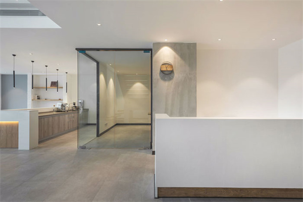 辦公室裝修設(shè)計(jì)采用全天候辦公的設(shè)計(jì)理念,辦公場(chǎng)所能隨著時(shí)間變化而將環(huán)境進(jìn)行相應(yīng)變化,為員工提供更加自由輕松的辦公氛圍。門廳區(qū)域摒棄傳統(tǒng)冷冰冰的接待形式,由吧臺(tái)、茶歇區(qū)、健康辦公區(qū)、討論區(qū)等功能組合而成,把互聯(lián)網(wǎng)開放性思維植入到日常辦公生活中。同時(shí)利用健康跑道地毯將整個(gè)空間串聯(lián)起來,讓空間更加具有活力和生氣。