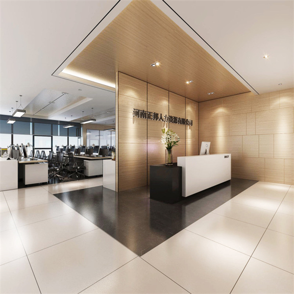 3、辦公室前臺(tái)作為辦公室裝修設(shè)計(jì)中重要的一部分,更要實(shí)現(xiàn)功能與美感的高度統(tǒng)一,旁邊可配備招待客人的小茶幾和洽談椅,為辦公室營造出一種輕松的氛圍。讓來訪者感到放松,更能促進(jìn)合作。