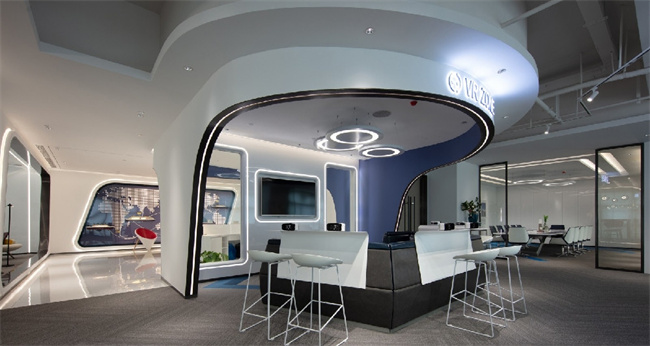 4、本案例的公司從事的是高科技行業(yè),甲方要求室內(nèi)的空間設(shè)計(jì)要具有未來的科技感。因此在500平辦公室裝修設(shè)計(jì)中,運(yùn)用了曲面弧形的流線型設(shè)計(jì),給人營造了一種置身與太空艙的感覺。