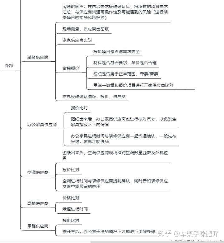 裝修項(xiàng)目需要對(duì)接的供應(yīng)商可不止是裝修公司哦,還有涉及整個(gè)項(xiàng)目的辦公家具,綠植,甲醛,空調(diào)等統(tǒng)籌,對(duì)于不同供應(yīng)商需要注意的事宜,咱們也備注好了哈,大家多多留意哈(另外,需要說明的是,任何項(xiàng)目管理,靠譜的供應(yīng)商能給你省很多心,血與淚的教訓(xùn):供應(yīng)商的選擇一定要靠譜!靠譜!靠譜!