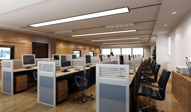 辦公環(huán)境明快是指辦公環(huán)境的色調(diào)干凈明亮,燈光布置合理,有充足的光線等,這也是辦公室的功能要求所決定的。明快的色調(diào)給人潔凈之感,使人心情愉快,明快的色調(diào)也可在白天增加室內(nèi)的采光度?,F(xiàn)在有很多設(shè)計(jì)師將明度高的綠色引入辦公室,這類設(shè)計(jì)往往給人一種良好的視覺效果,而創(chuàng)造一種怏然春色。
