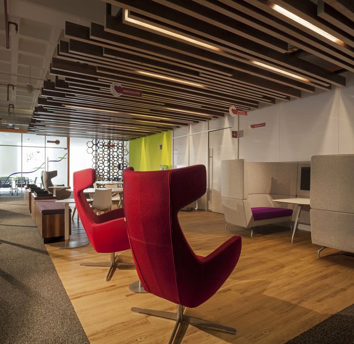 新潮熱烈 使用幾何圖案作為設(shè)計(jì)元素,明亮度對(duì)比強(qiáng)烈,使用新式裝修材料。適用于新興的電腦資訊業(yè)、媒體行業(yè)。