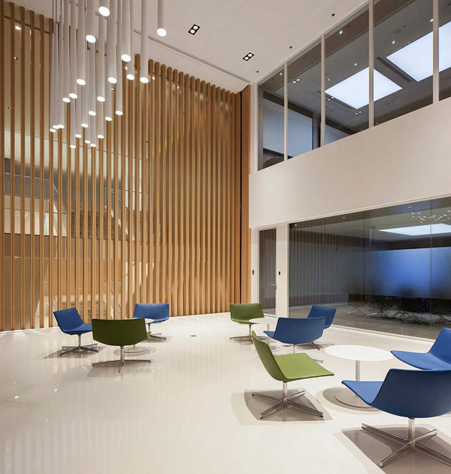 簡約型辦公室裝修,是非??简灴臻g的靈活性和實用性的。如何使空間功能而相互滲透?如何讓空間使用率達到**?這都是非常需要注意的。劃分空間的**途徑不一定局限于硬質(zhì)墻體,可以通過家具、陳列品、吊頂、地面材料甚至可以根據(jù)燈光的變換來進行劃分,具有很好的兼容性、流動性及靈活性。