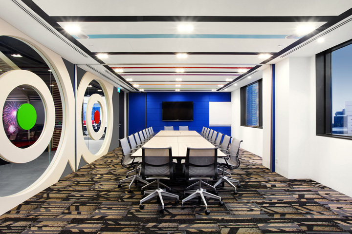 設(shè)計師依據(jù)“旅游”這個公司特質(zhì)將旅游的輕松感受應(yīng)用于辦公環(huán)境的設(shè)計,為員工創(chuàng)造一種時刻在旅途中的新鮮感受,令每天的工作都充滿激情、新鮮與活力。設(shè)計采用折衷手法,將材料、家具、色彩混搭在一起,淺色橡木飾面與明亮的色彩帶來多姿多彩的旅游感受;多種開放場景、裸露吊頂以及自然光線的運用為員工呈現(xiàn)出一個活力與激情的辦公場所。室內(nèi)設(shè)計優(yōu)先考慮員工的工作感受,將工作區(qū)安排在玻璃窗附近,擁有開敞的視野與自然天光;而將不需要光照的資料室放在中心位置也便于取閱。為了創(chuàng)建人在旅途的氛圍,室內(nèi)的通道也做了小小的設(shè)計,比如路牌、廣告燈箱等會令人聯(lián)想到旅游中曾經(jīng)熟悉的場景。